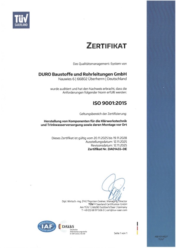 Herstellung von Komponenten für die Klärwerkstechnik und Trinkwasserversorgung sowie deren Montage vor Ort